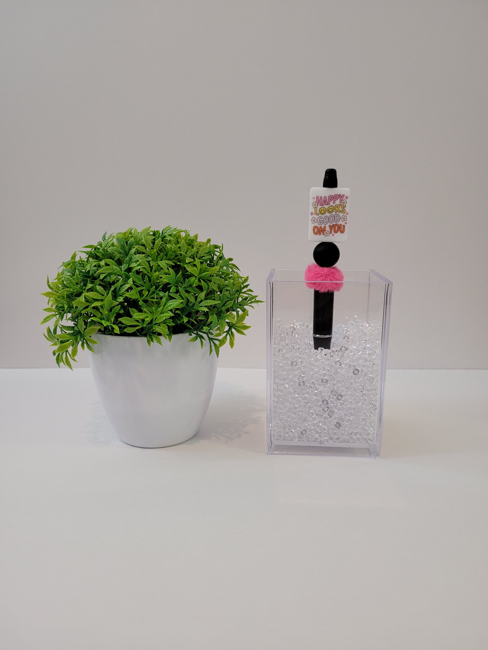 Brighten up your day with this uplifting pen, featuring a charming focal bead that reads "Happy looks good on you." With a smooth ink flow and a stylish design, this pen is a perfect reminder to embrace joy and confidence. Whether you're jotting down notes, making to-do lists, or gifting it to someone special, this pen adds a touch of positivity to every word you write!